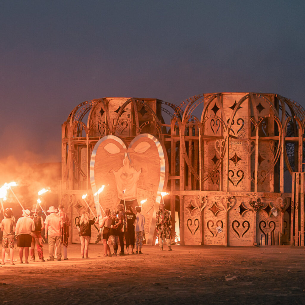 The Temple is a commissioned artwork, carrying the opportunity and responsibility to be an agent of transformation, and as such comes with support of additional inputs for the build crew.