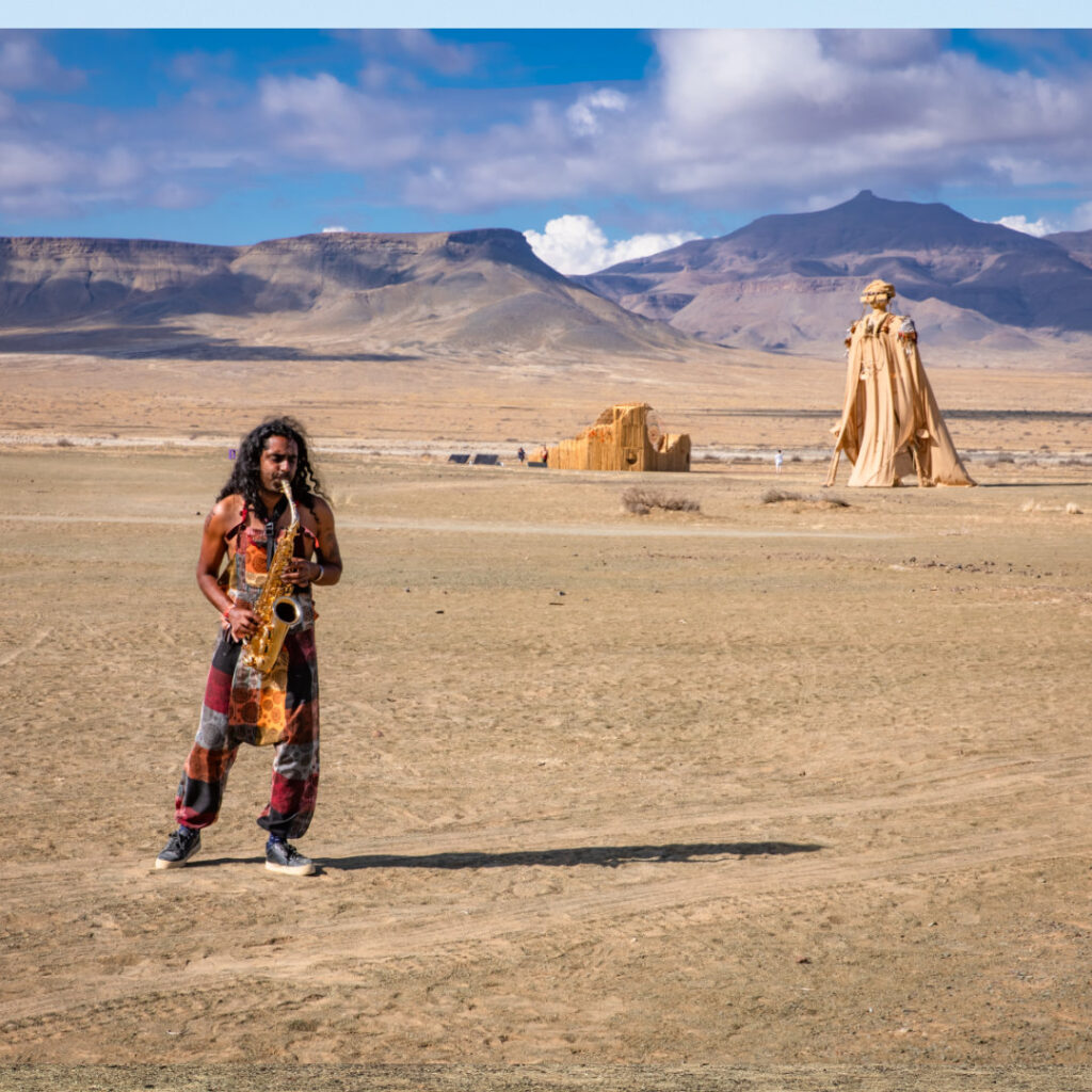 All other creative expressions that don’t involve a tent or an engine on wheels are classified as art projects. From strings of balloons to giant T-Rex sculptures, from sunrise didgeridoo solos to khoi storytelling, from a titties parade to a 74-piece symphony orchestra—these are all art projects. Whether intimate or monumental, playful or profound, they are the heartbeat of Tankwa’s creative landscape.