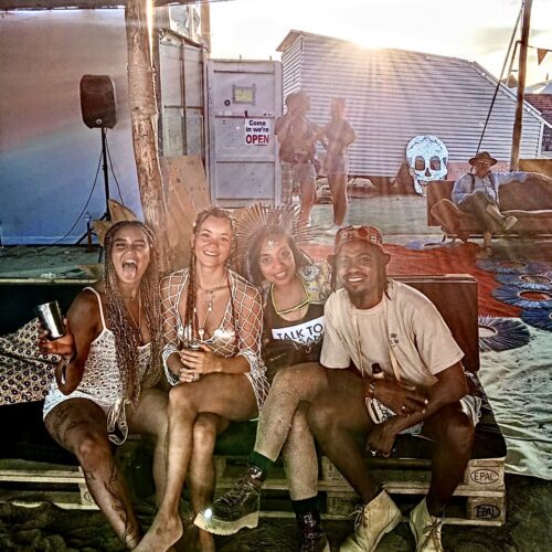 We are building a mutant vehicle consisting of a Mad Max style trike, pulling a small trailer/cart with a DJ booth and sound system (think Jamaican style wall of speakers). We will be playing Drum&Bass, Industrial, Old School Jungle, Breaks, Metal, etc. Anything but the “fluffy stuff” you hear all over the burn.
