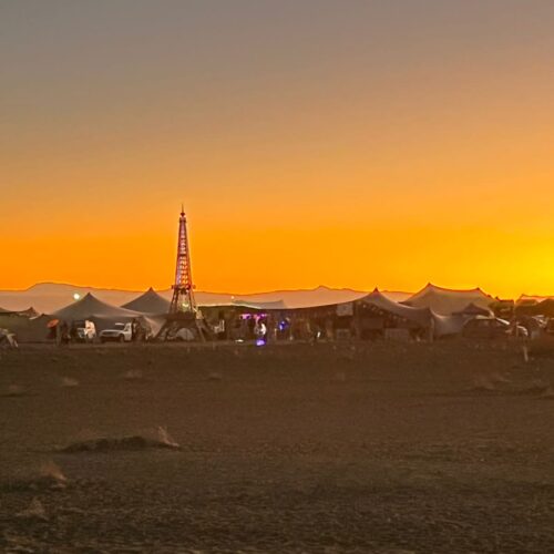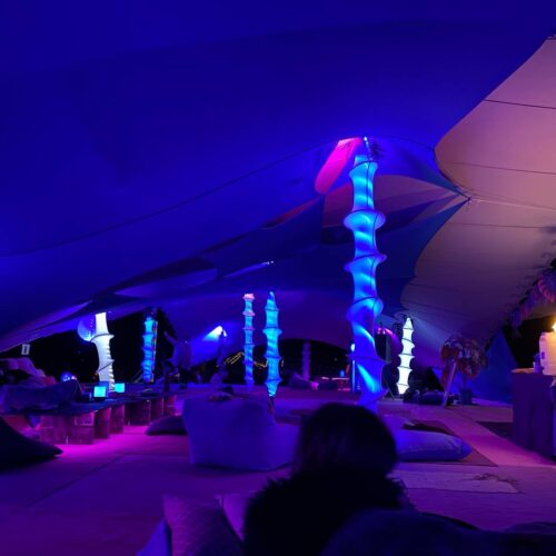 We host anything in the front of our camp that is open to all Burners – it is normally 300m2 shaded with small tables and chairs -where early morning yoga stretches follows by ambient chill music and 420 vibes to juice bars and fresh produce hand outs leading up into afternoon cocktail bars into night time to legendary parties and performances that we are known for.
